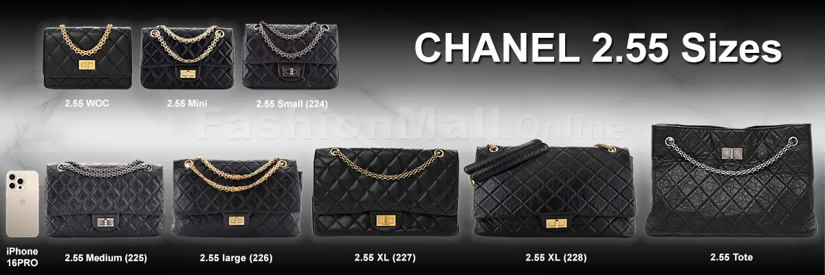 The Chanel 2.55 bag comes in 6 sizes: